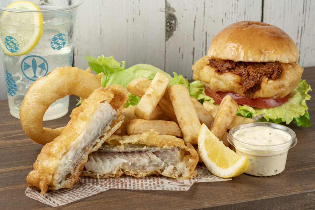 糸魚川の冬の味覚「鮟鱇(あんこう)」を使用したハンバーガーやその他のフィッシュバーガー、フィッシュアンドチップスなどを販売しております。