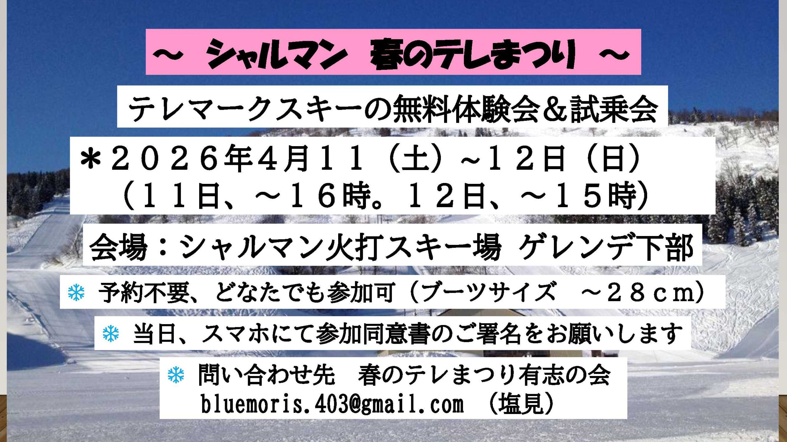 昨年好評だったテレマークスキー無料体験会・試乗会を開催いたします